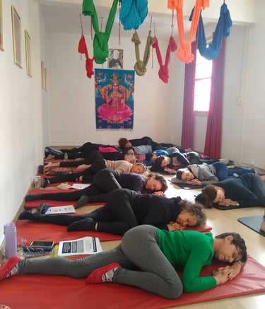 Aulas práticas e teóricas para instrutores de yoga.